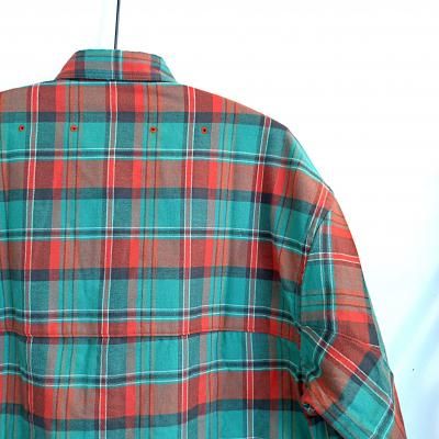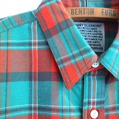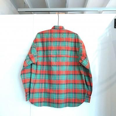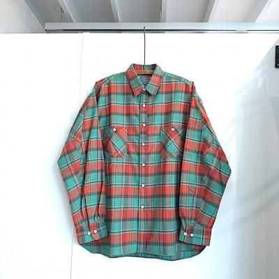 こちらはSUNNY ELEMENTの25AW登場の新型CANYON SHIRT。30sのアメリカンワークシャツをSUNNY ELEMENTらしくアレンジ。シングルニードルの得意な工房にてワークシャツらしく、襟、ポケット、カフス、前たてなどはダブルステッチにて縫い上げております。カラーのミント×オレンジというのもいまの時代ではあまり見かけないDEADSTOCKならではの配色ではないでしょうか。