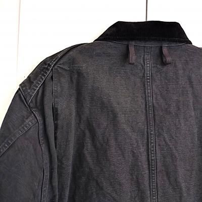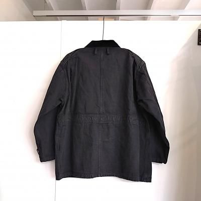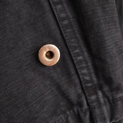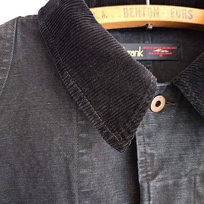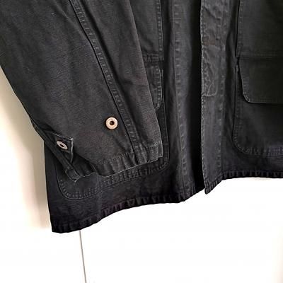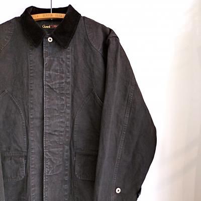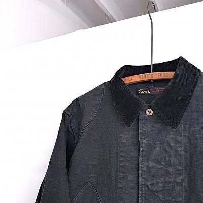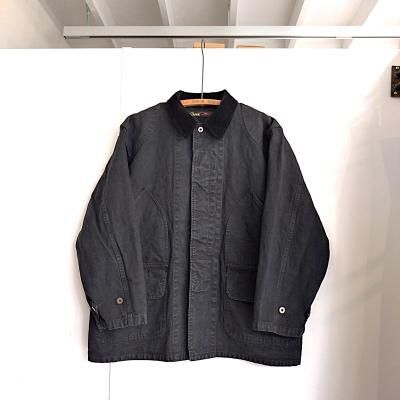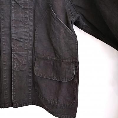 コットンヘンプのオックスフォード生地のハンティングジャケット。Usedライクな生地感やメタルボタンのサビなど雰囲気ある仕上がりとなっております。
