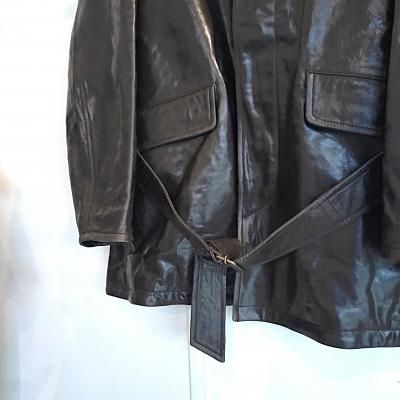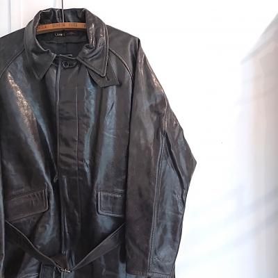 80sの某ブランドのシングルトレンチコートをショート丈にアレンジしたアイテム。トルコ産のラムレザーを使用。