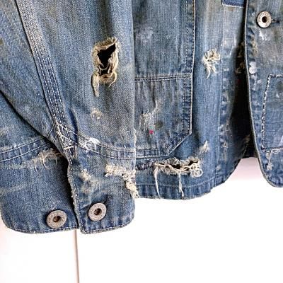 25AW新作の H-JK055カバーオール。非常に凝ったつくりの1着。1点1点破れや汚れ等の加工とリペア風の加工を時間と手間を惜しまず作られております。