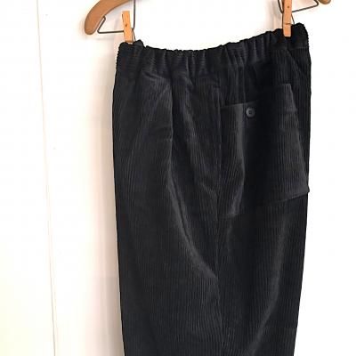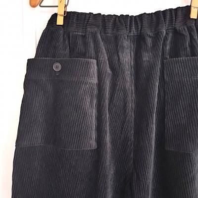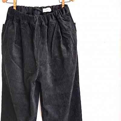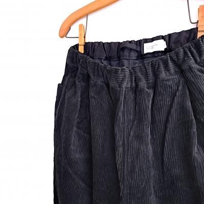 パイル部分に綿/レーヨンの混紡糸を使用した落ち感のある風合いのコーデュロイのイージーパンツ。