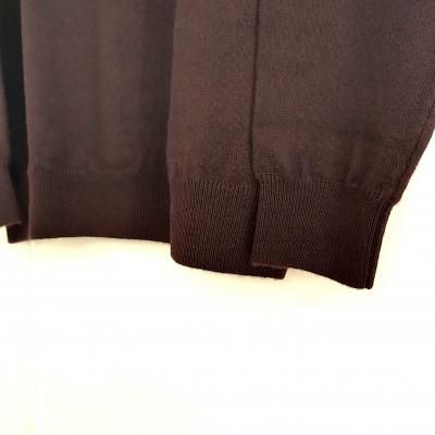 柔らかな風合いを重視する、一般的なカシミヤセーターでは用いらない、強撚のカシミヤ糸を採用。 さらに、通常の度詰めのセーターの上を行くタフな着心地を追求し、繊維が切れる限界まで撚りをかけた強度の高い別注糸を開発。糸自体の強さがそのまま製品の風合いに表れています。