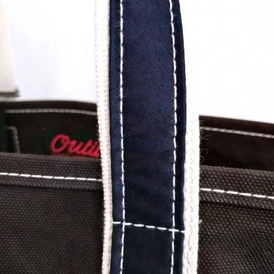 OUTILのデザイナーが毎日のように愛用しているBAGはブランドとしては珍しいアメリカのメーカーのVintageのBAG、となり、そのVintageのBAGをモチーフにアレンジ。80年代の限られた時期に作られていたデラックストートをベースに、ハンドルの部分と底部にはモールスキンを使用しており、キャンバス×モールスキンのOUTILらしくブラッシュアップ。この春夏おすすめのアイテムとなります。サイズがMとLがありこちらはLサイズとなります。