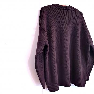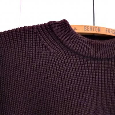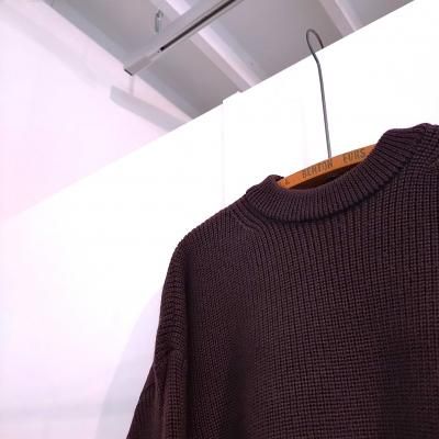 無駄を削ぎ落としたデザインと、安心感のある肉厚な畦編み(リブ編み)で仕立てました。